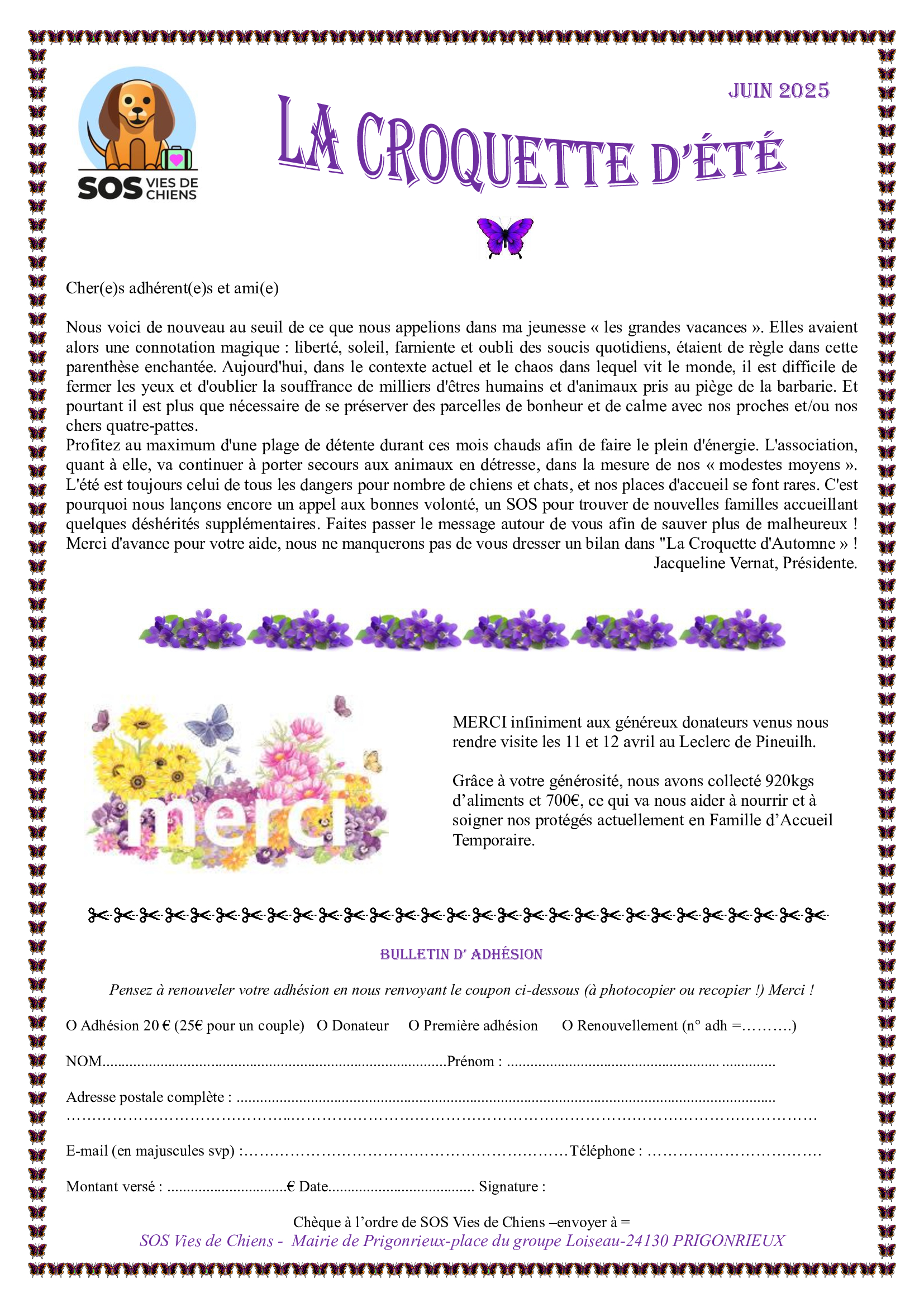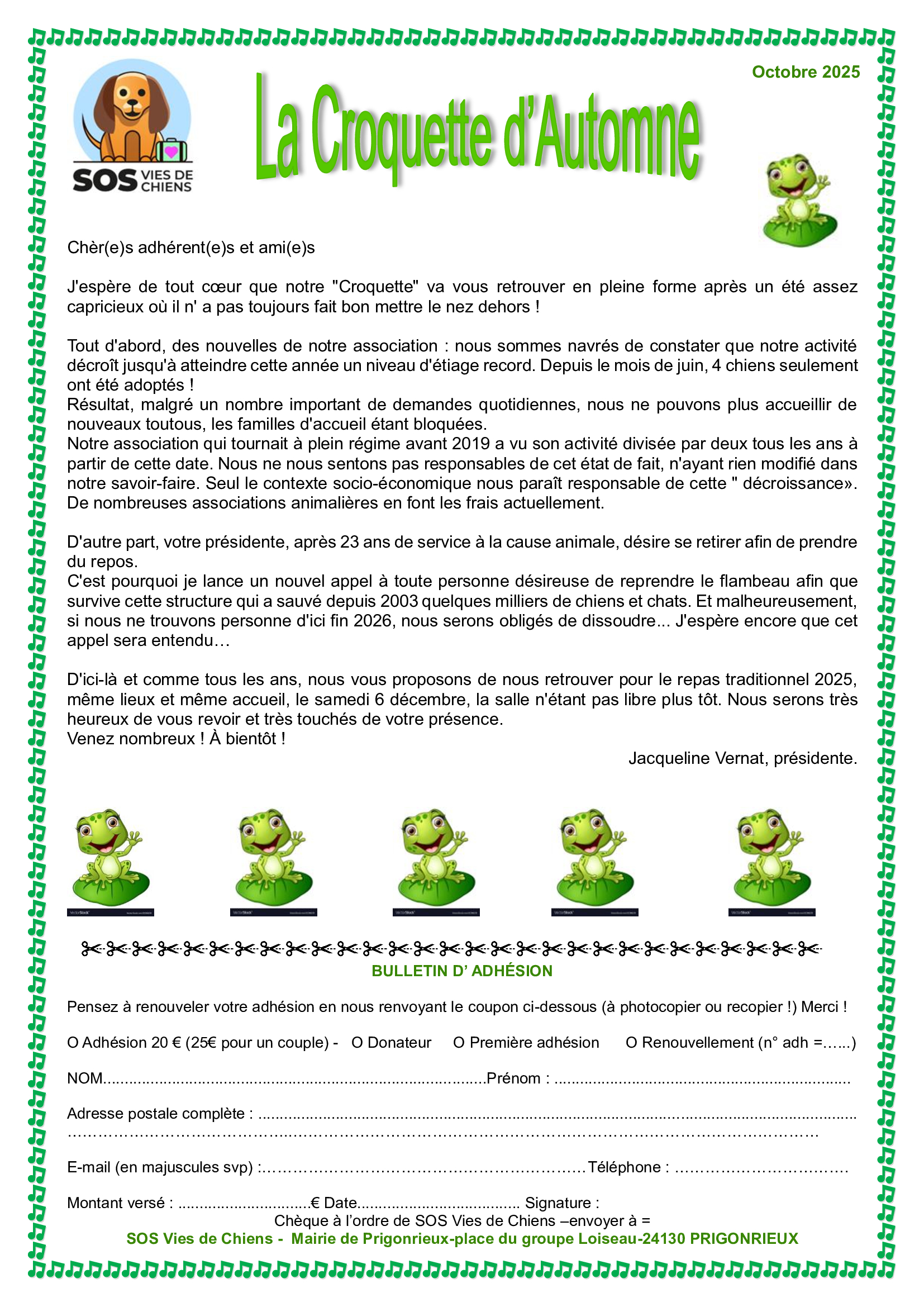 Adhérez à l’association et recevez gratuitement notre journal «La Croquette»